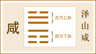 艮为山,兑为泽,山上有泽。泽性下流,以山感泽,为咸。咸为无心之感,象征无心的感应,这是异性间自然、必然的现象。男女共相感应成夫妻可获吉祥。
